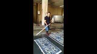 Nella prima fase si esegue la battitura del tappeto, a cui segue il lavaggio ad acqua (nella maggior parte dei casi) in cui vengono utilizzati detergenti delicati che ridonano la brillantezza originale alle lane.